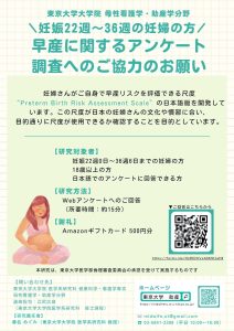 【研究参加者募集:早産に関するアンケート調査のお願い】